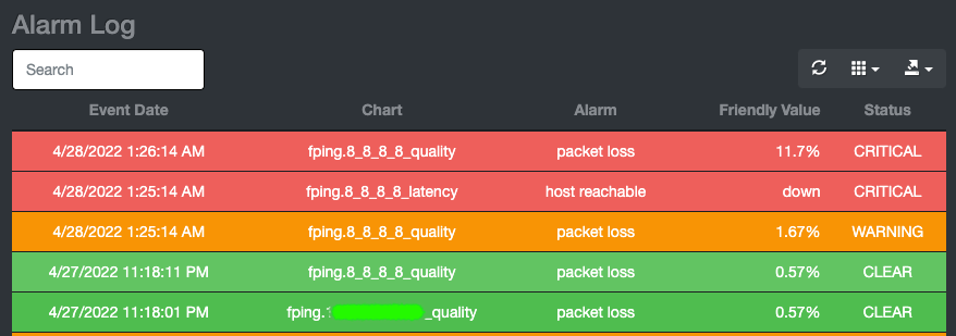 Monitoring your connection is done via analyzing Netdata output and alarms.